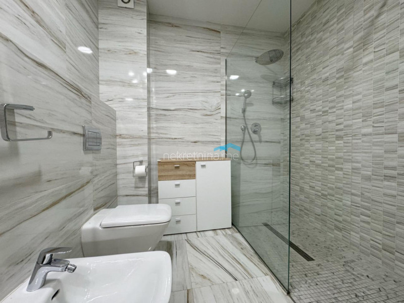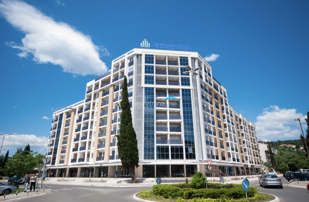Furnished apartment for rent in Preko Morača, Zetagradnja building. The apartment has a surface area of 95 m2, three-bedroom structure, east orientation. Structure of the apartment: entrance hall, living room, dining room and kitchen, three bedrooms, two bathrooms, toilet with laundry and three terraces.